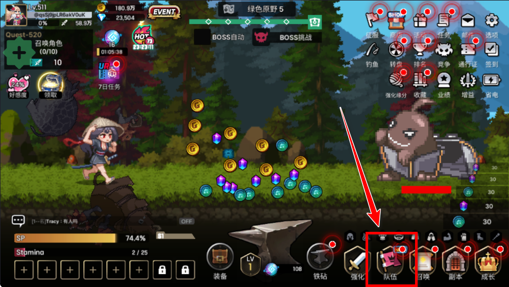 8.排名:可以查看你现在的全服排名,排名名次也会送大量奖励。