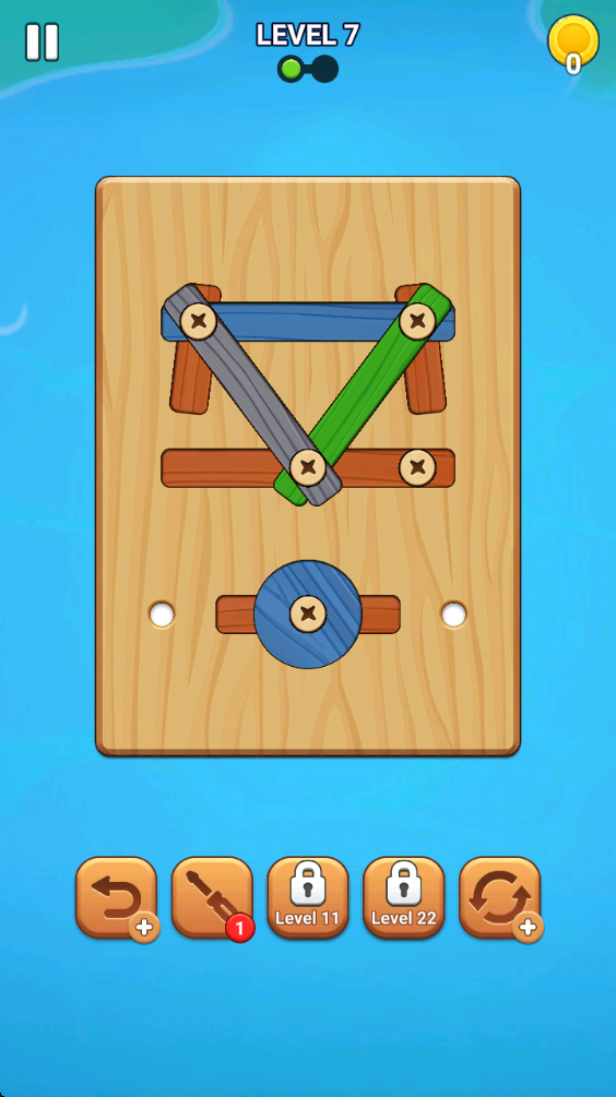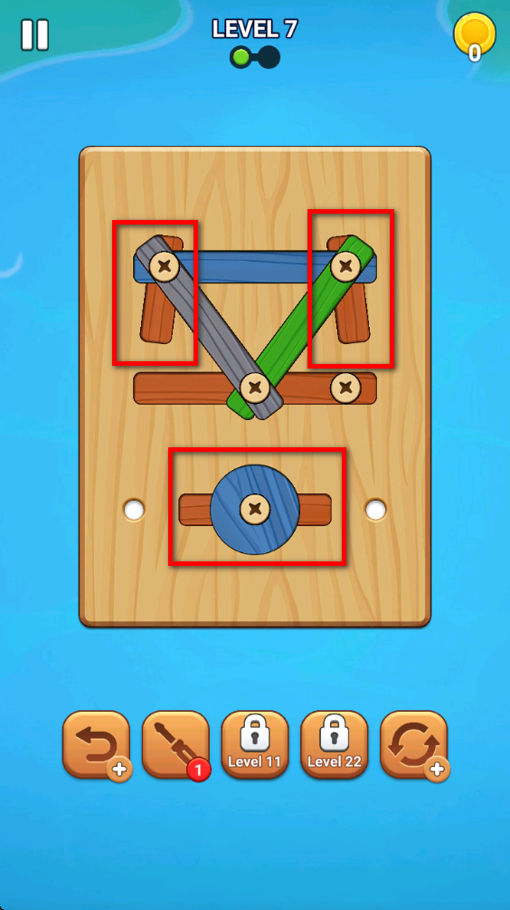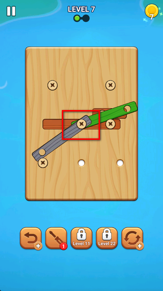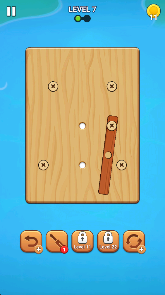 1.游戏目标就是通过拧开螺丝解锁木板,所以我们首先要做的就是观察布局。