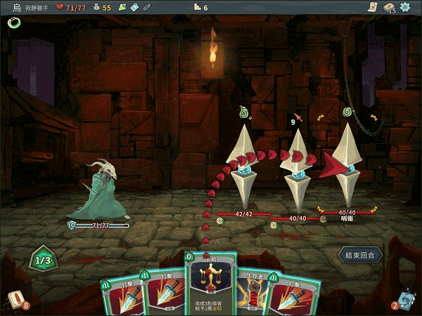 5、每回合你将获得三点能量以及从牌库中抽出的五张卡片,此时你能打出无限张的卡片,就算打到牌库没卡还会自动洗回去重抽。