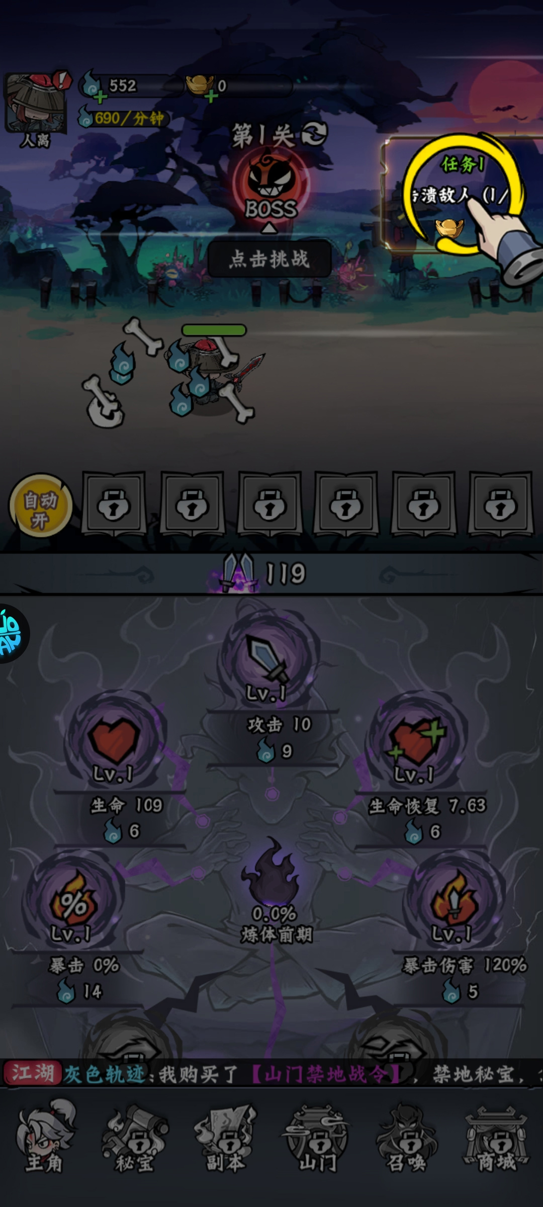 凌云记是一款融合了放置点击与武侠元素的挂机手游,游戏采用卡通风格,玩家可以在轻松愉快的氛围中体验江湖冒险。玩家通过点击和放置系统自动收集资源,提升角色能力,挑战各种武侠世界中的敌人与关卡。游戏内有丰富的武器、技能和角色培养系统,玩家可以自由选择培养路径,体验成长与探索的乐趣。