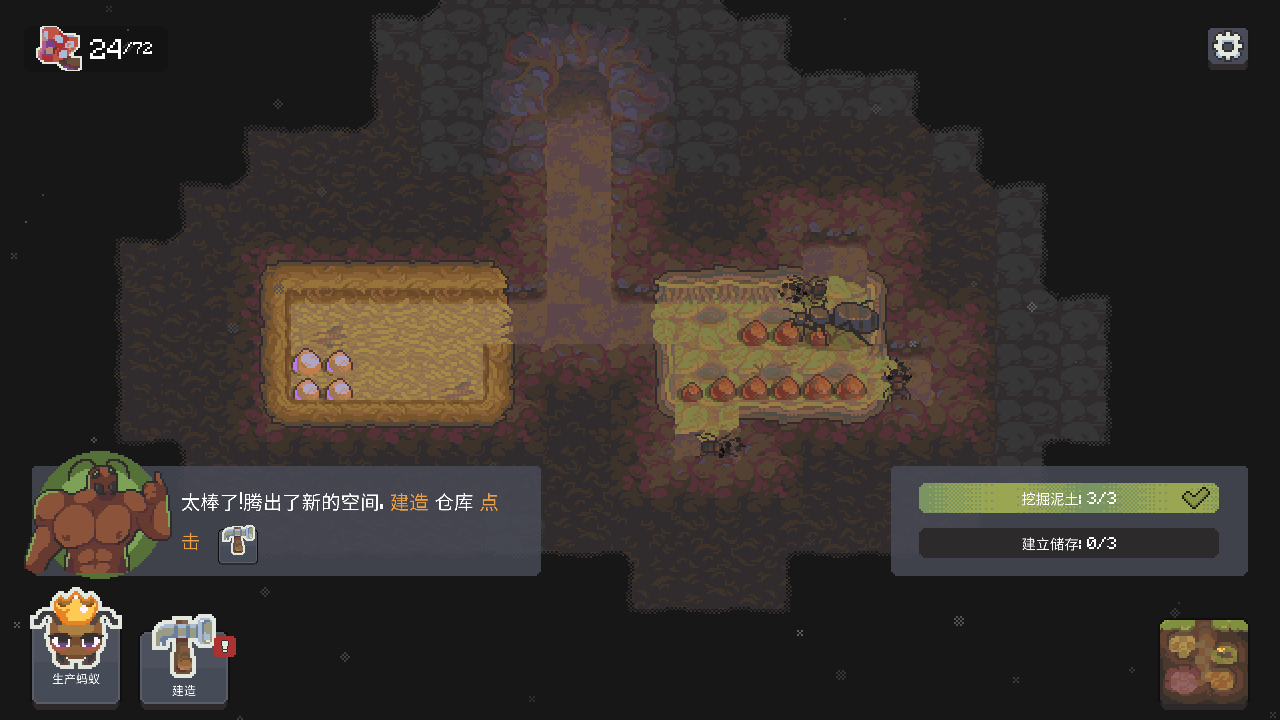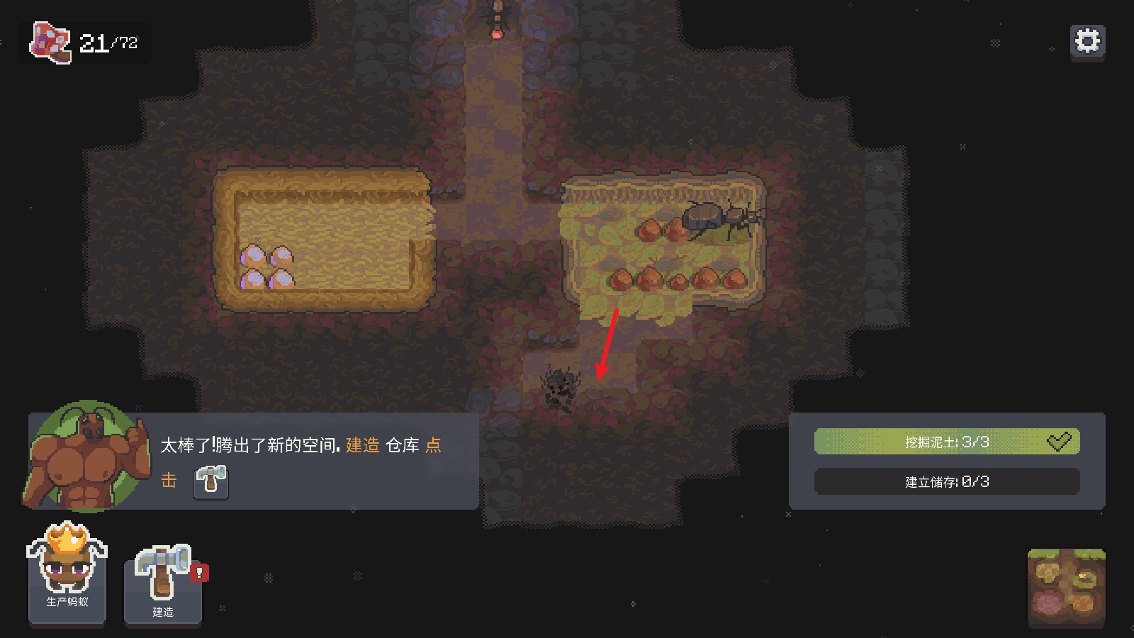 3.当蚂蚁太多的时候,玩家就需要点击这个键来扩建自己的蚁巢。