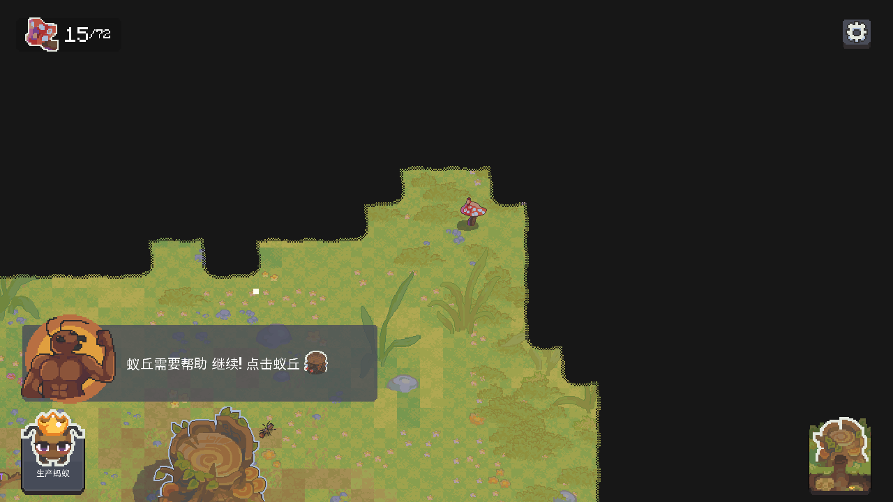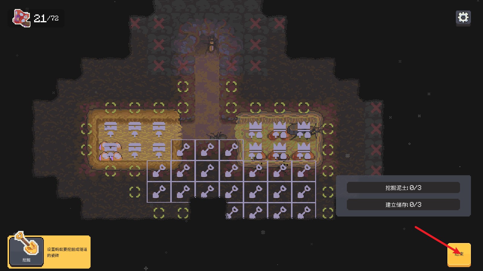3.随后我们进入蚂丘,在这里通过挖掘来获得更多的区域,选中位置后点击结束。