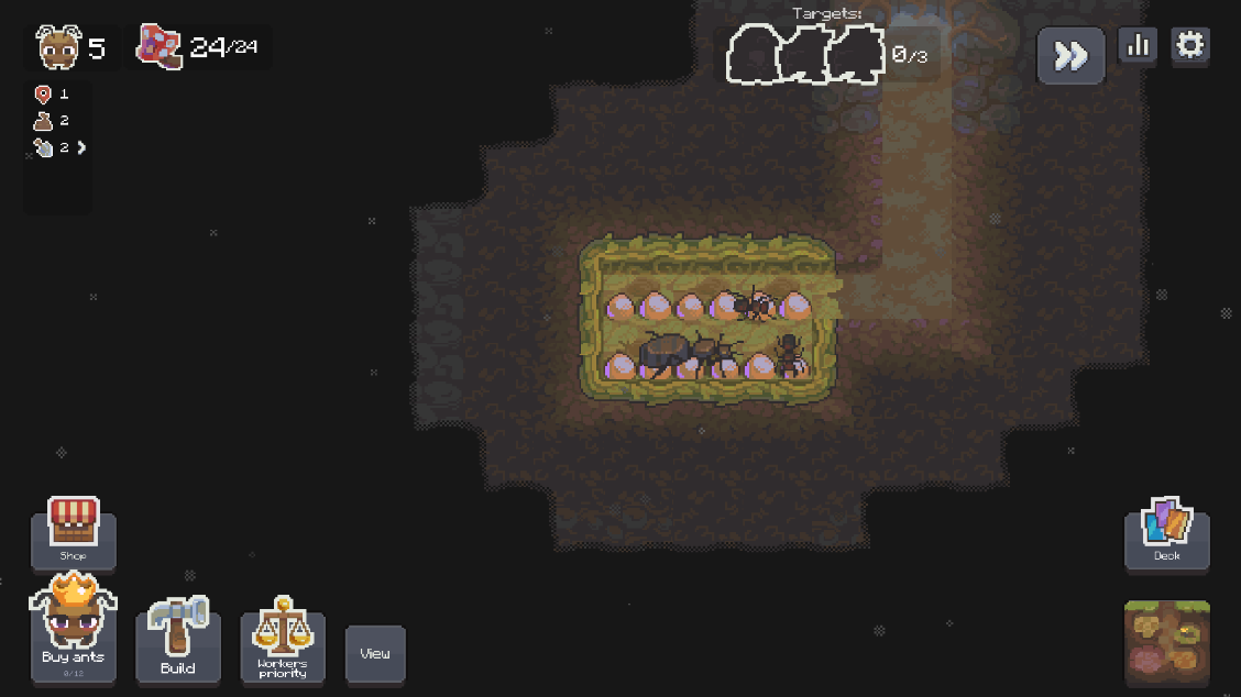 如果你发现资源累积过多,可能意味着你的发展速度过慢。但是,将资源消耗殆尽也并非明智之举,因为恢复阵亡的蚂蚁需要消耗食物。