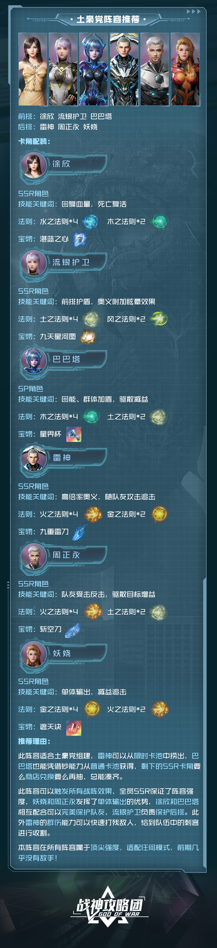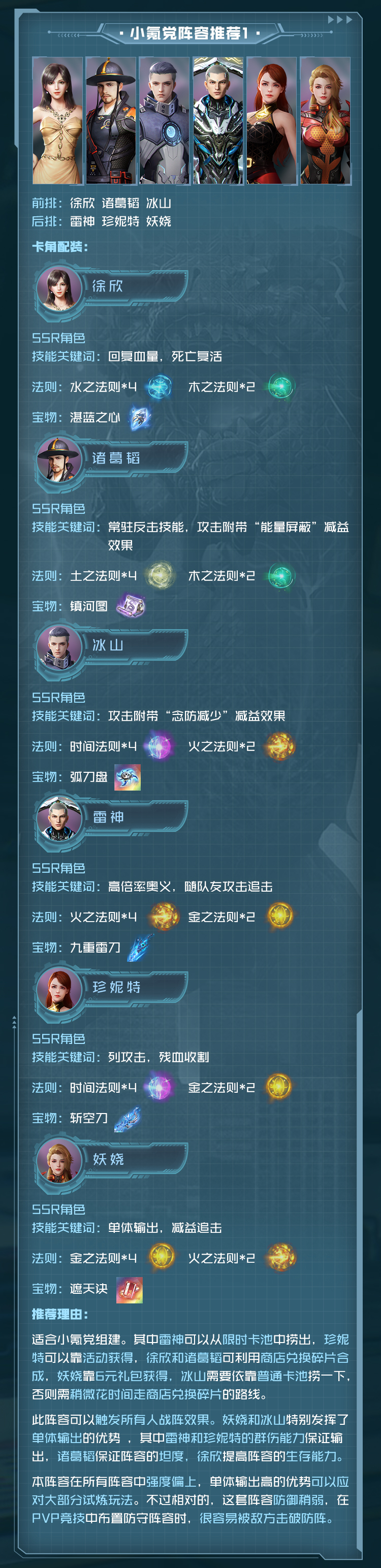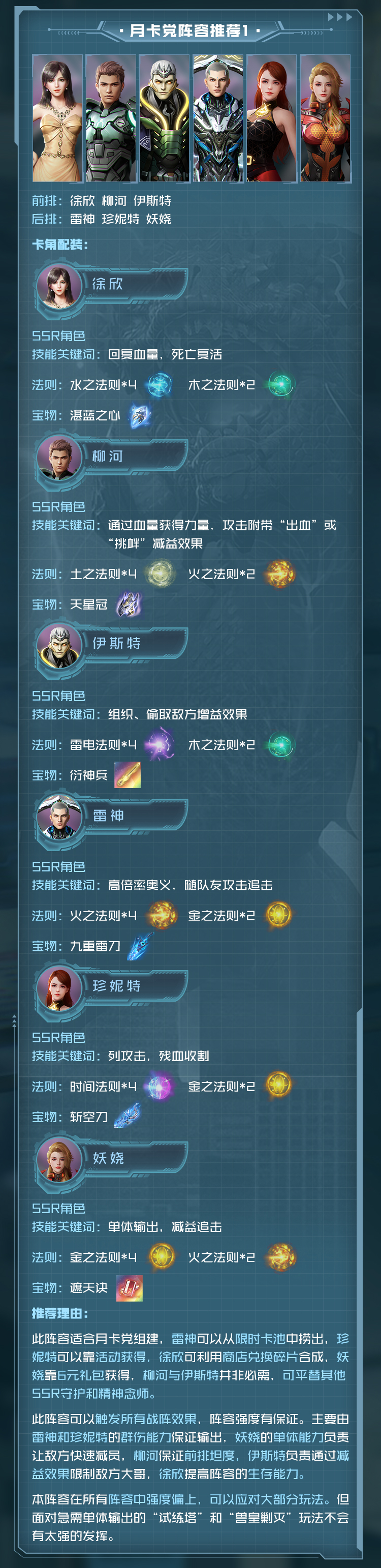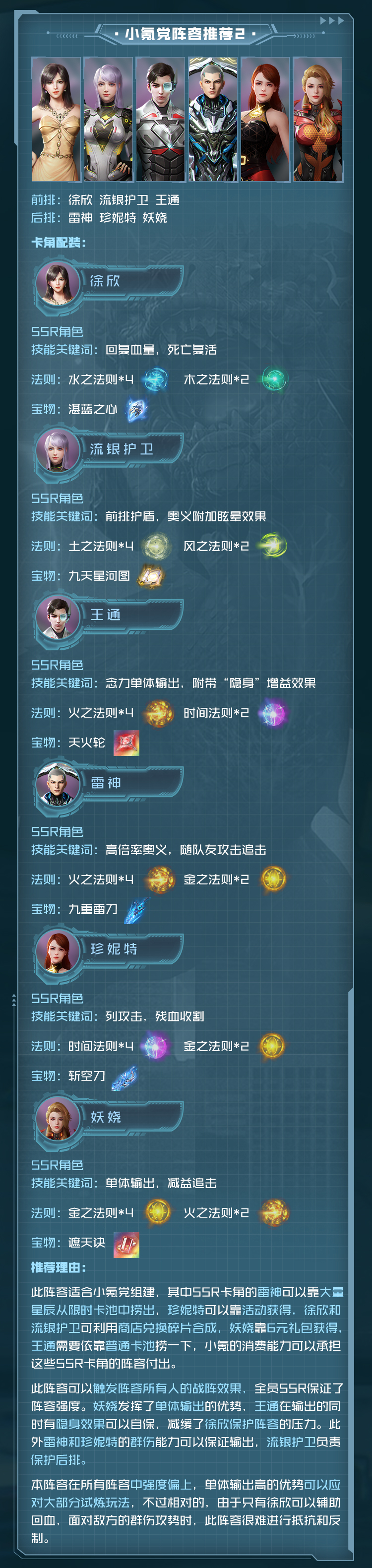 守护角色,能为前排队友提供坚实的屏障,必杀给同排队友高额护盾,奥义能给予敌方强力的眩晕控制效果,但在输出方面稍显不足。