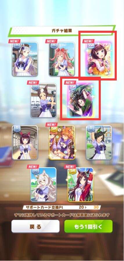 二、进行辅助卡池的抽卡时,通常只需进行三次十连抽,即可获得三张SSR稀有卡。