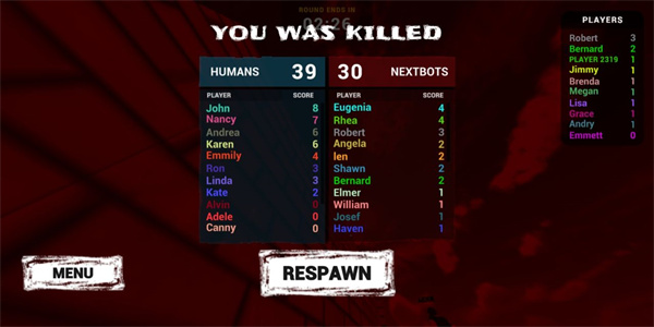 4、如果被杀了则会游戏结束,可以点击resp awn重新开始游戏;