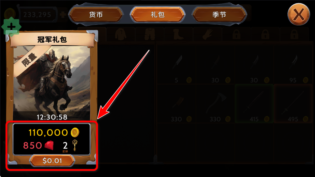 4.金币可以购买这里的装备套装,可以直接选择最高级的。