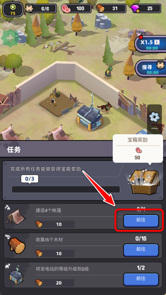 2.选择你想完成的任务,点击前往。