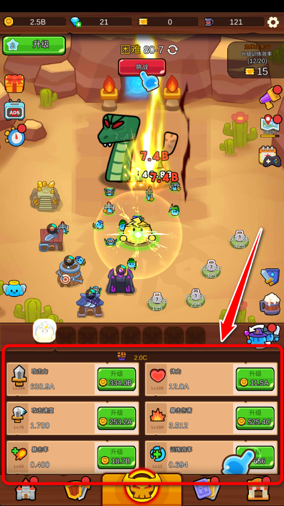 1.主页下栏第三个的下方将会出现各种技能升级,这个会是所有小兵通用的技能。