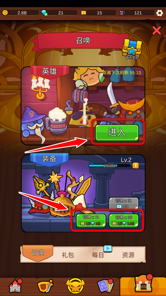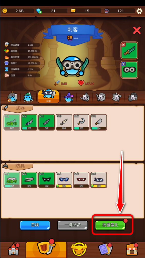2.主页下栏第二个,可以单独给某种职业的小兵强化装备。