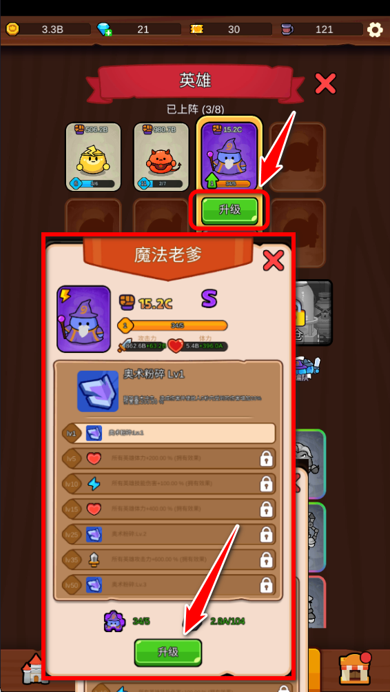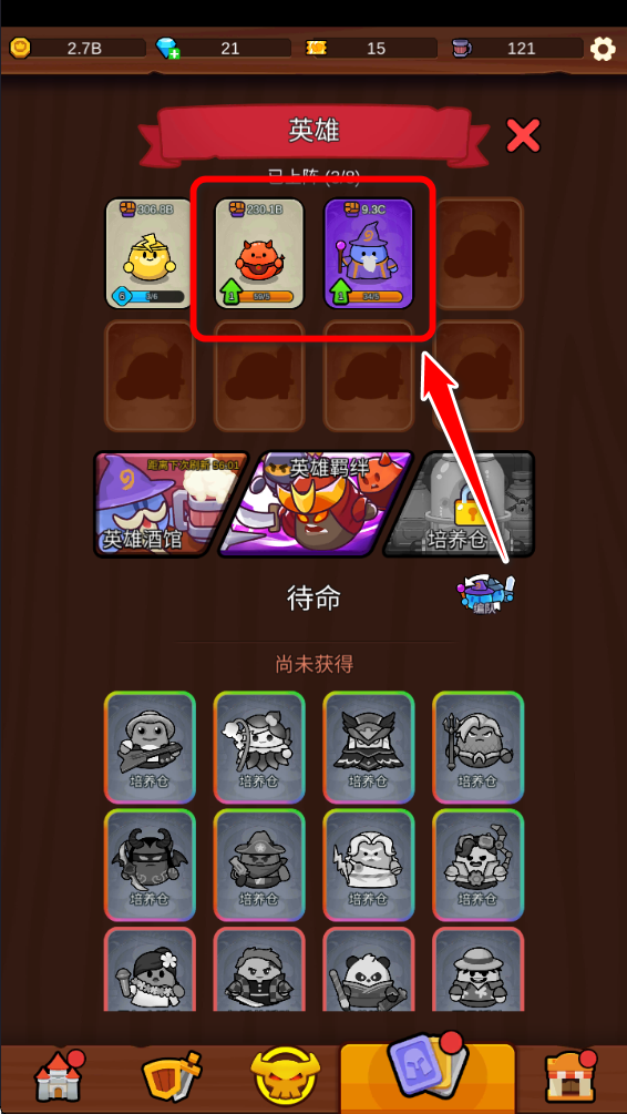 3.退出来之后点主页下栏第四个,点击英雄,选择升级。