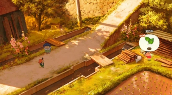 3、等到黄昏时间老奶奶会让开,她的田里面有个闪光点就是紫苏叶。