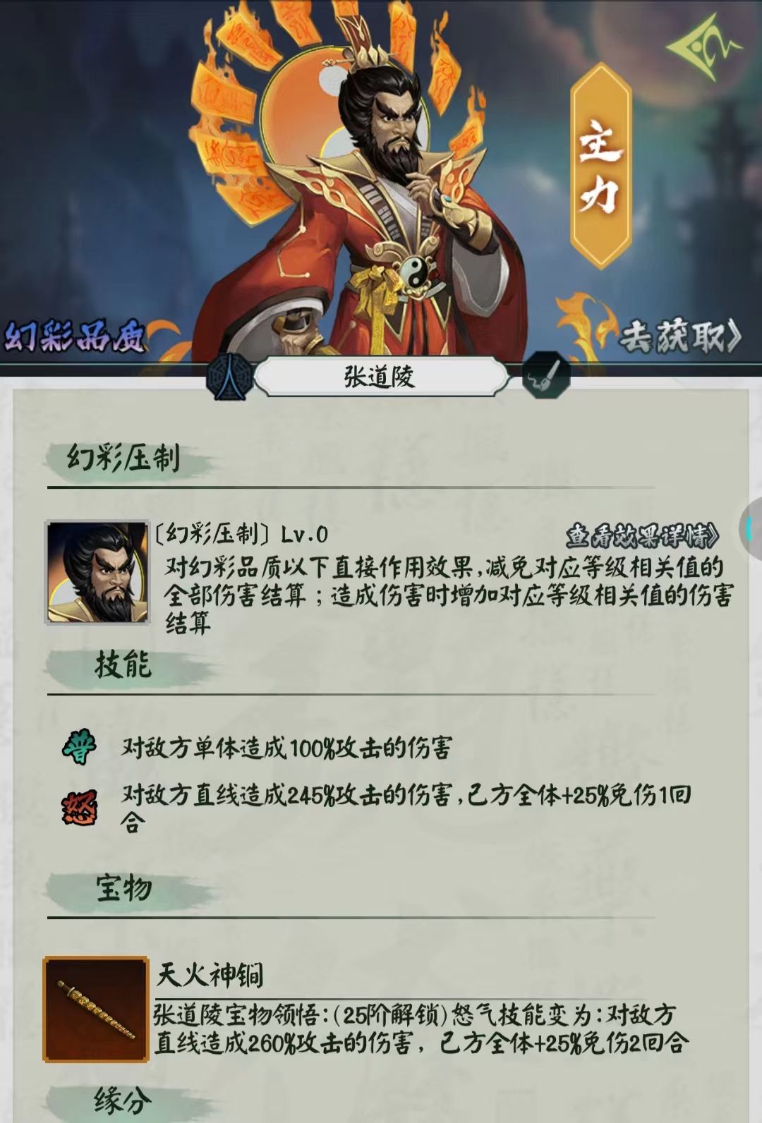 张道陵怒攻技能由原来的封疗变成了全体免伤,进一步为人族提供安全保障,大家觉得没有封疗很难与鬼母抗衡,但是他是幻彩2已经在属性上赢过了鬼母,直线输出的怒攻伤害数值也超过其他幻彩,幻彩2的九尾虽然也有加血但是伤害数值偏低而且依赖性太高;配合彭祖一减一免使人族在场持久性会非常高。