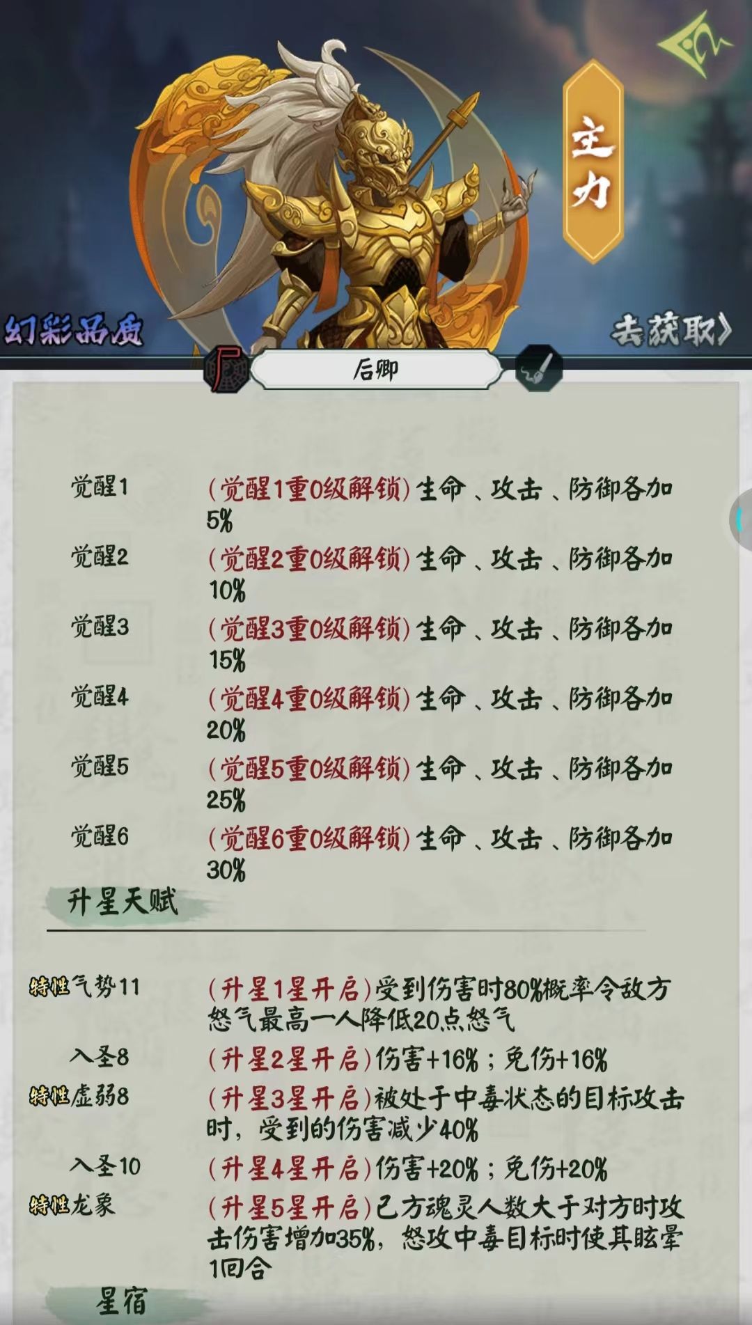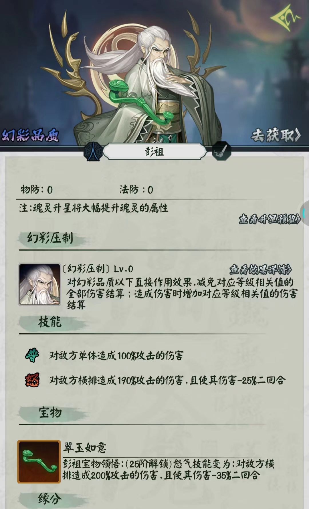 在拥有了幻彩魂灵1石矶后,妖族拥有了前排和输出手段,我们可以看到石矶由原来的打全体变成了随机打三个,宝物到25阶可以获得百分百概率的灼烧,配合1星天赋与3星的复活生存能力极强!5星天赋也是配合3星天赋量身定制的神技;龙女也是不可忽视的重要魂灵,全体降怒+全体灼烧,五星技能虽然概率不高但是是控制对面全体的,如果能触发绝地翻盘也不是不可能;黑山老妖补上控制+白骨夫人提供增益,至于姥姥和白蛇看个人选择,姥姥星级不高的情况下用五星白蛇也可以。
