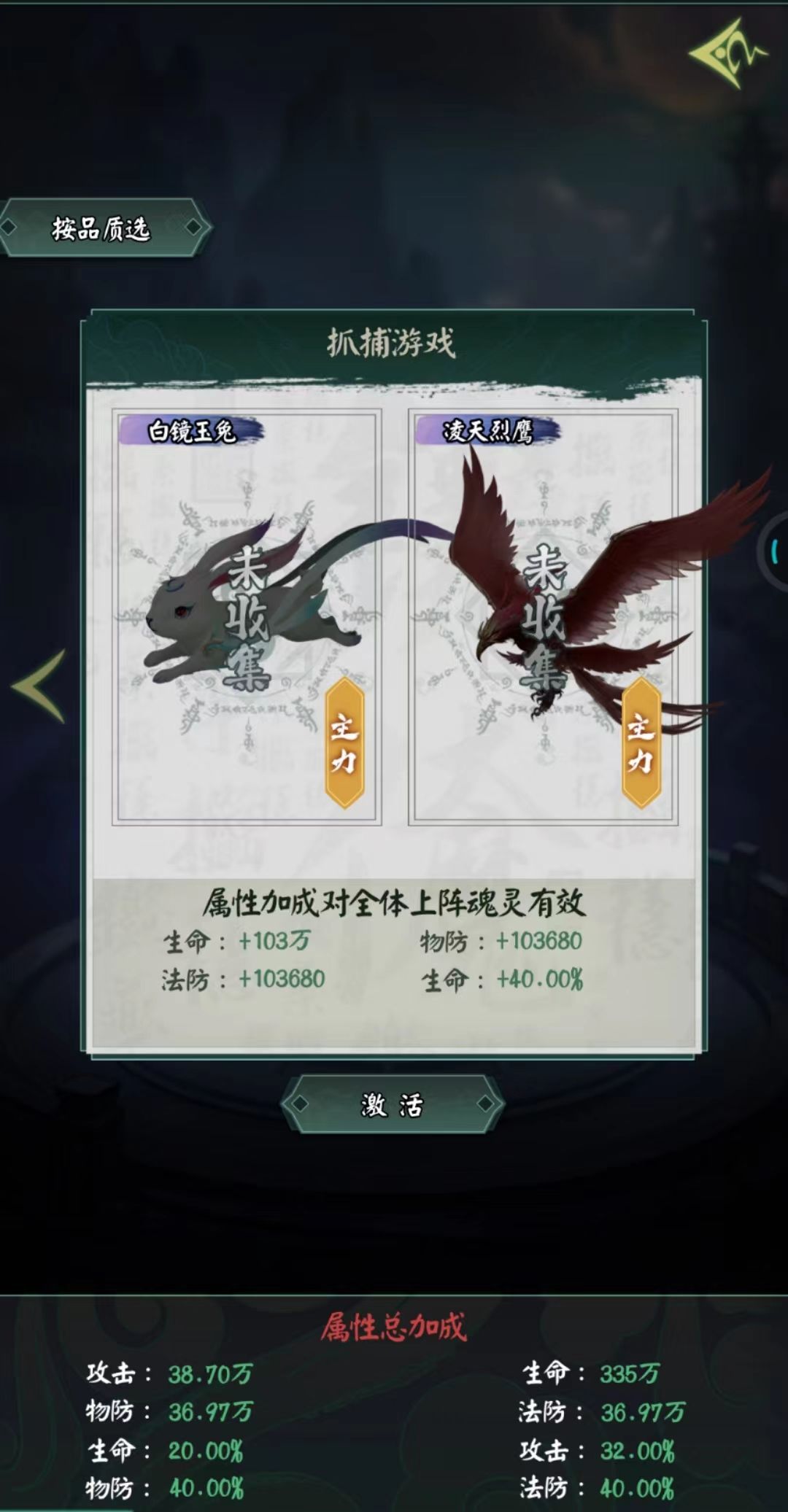 阵容的搭配奇效离不开魂灵的升星天赋,尽快提升星级才能发挥出他们的作用;合理的三大件选择也颇为重要,这次更新后三大件图鉴的顺序发生了改变,图鉴加成也变得不一样,我个人认为现在是灵符>神兵>宠物,幻彩2三大件都非常强,大佬主C可以佩戴寒天彻地+星月沉海+白镜玉兔,玩紫金的话可以选择岁岁平安+花开金銮+魅炎玄狸;狂角狮,破隐白虎和浴火之莲也是比较强的三大件,大家都可以自己组合搭配,玩游戏没有绝对的标准答案。