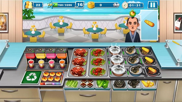 1、首先打开烹饪达人游戏之后,如下图所示,刚开始呢你只能玩低等级的烹饪,到了一点的等级才可以解锁其他烹饪技术;