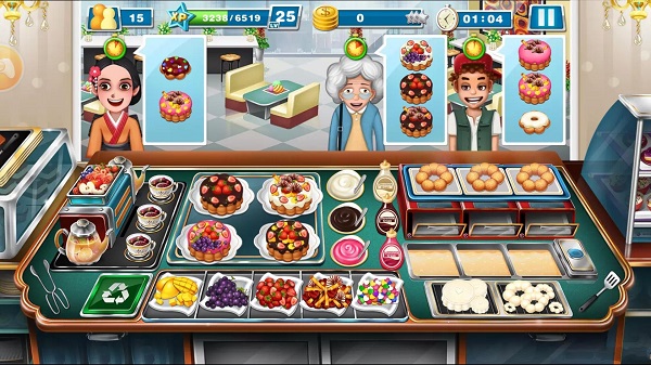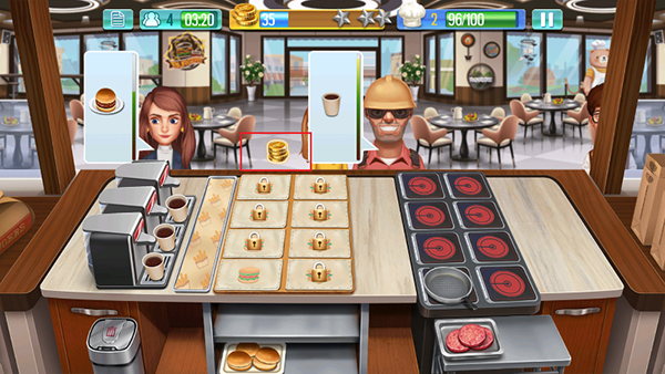 5、然而汉堡的正确做法是,需要把汉堡与肉片一同上架烧烤,等到成熟的话,就可以将其合成,交给客户,这样你就可以得到金钱了;