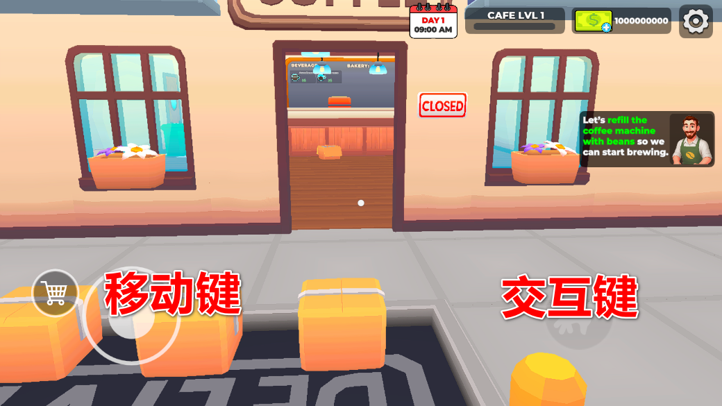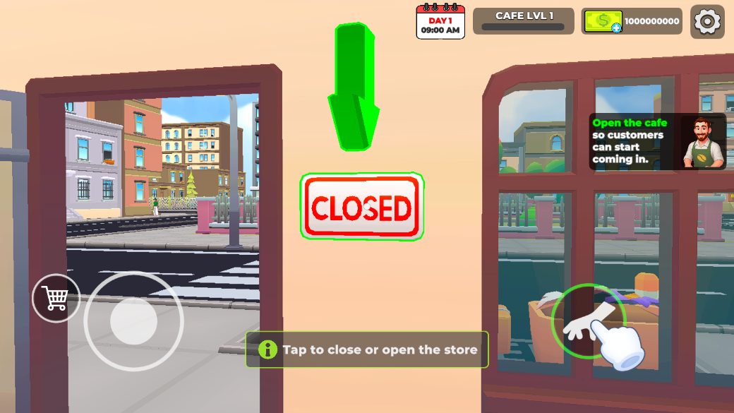 6.准备好一定的经营物资后,来到店外部的招牌处,点击将closed改为open;