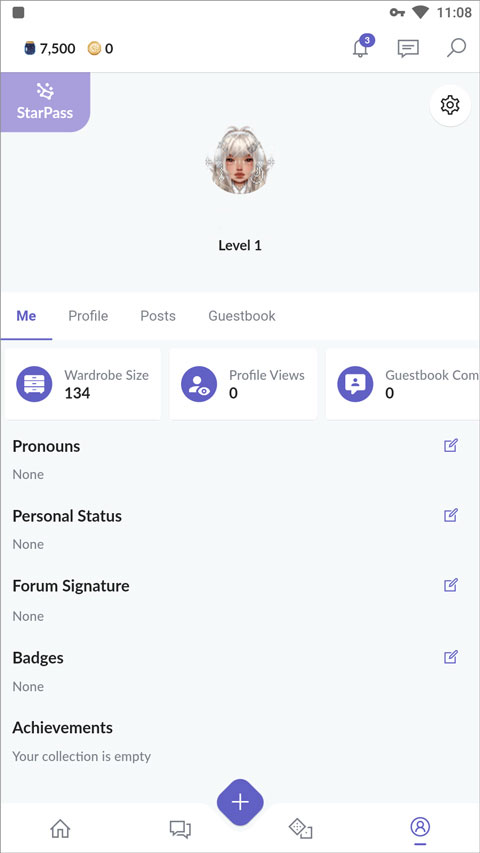 2、进入形象编辑页面,初始形象可以更改,人物左侧是当前已有的服装配饰,底部可以选择身体、贴纸、上衣、头发以及鞋子等选项,自由更换。