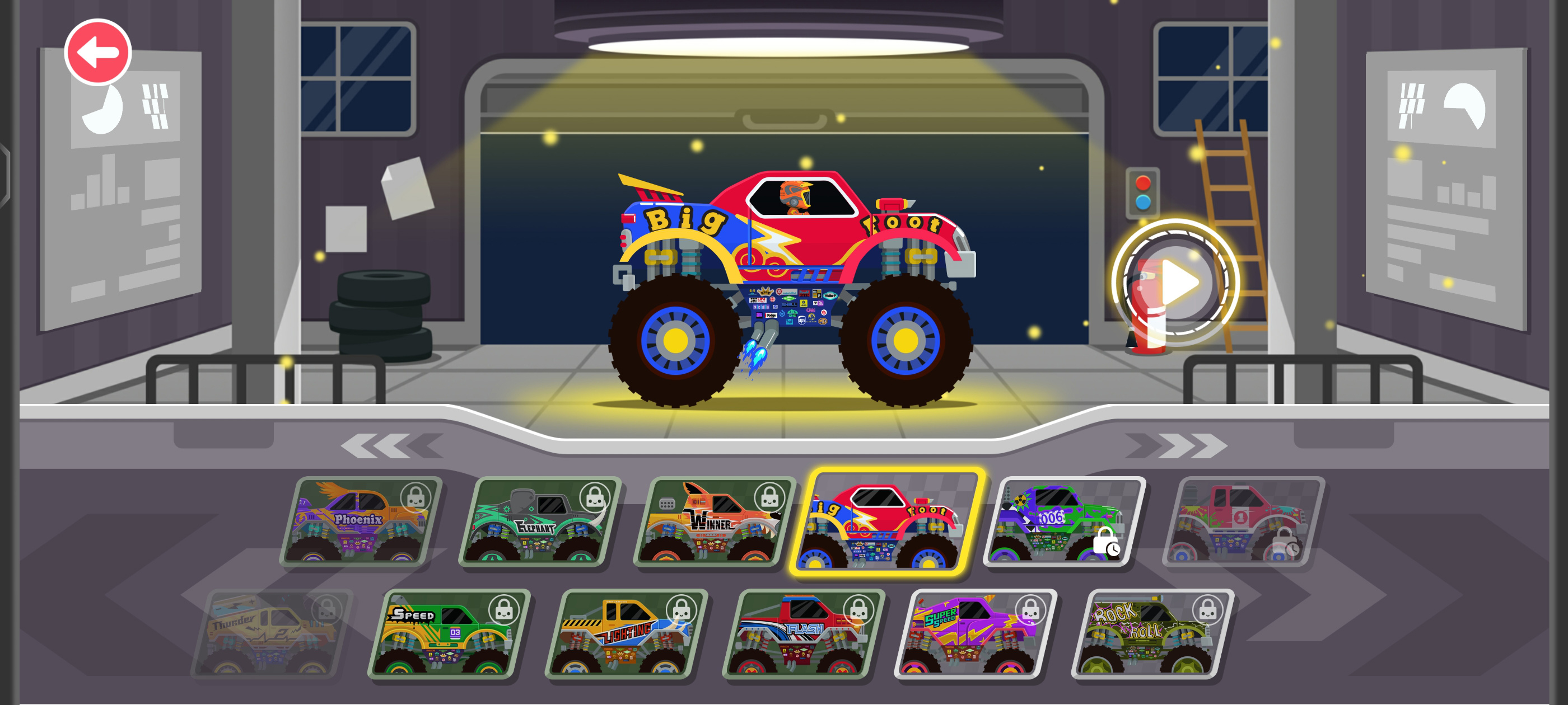 大脚车总动员是一款面向幼儿的卡通越野驾驶手游,支持离线游玩并无广告干扰。玩家可解锁多达72辆巨大卡车,驾驶不同风格(如恐龙、节日、火山等主题)的载具,在10个包罗万象的关卡中挑战BOSS。游戏操作简单,适合2–5岁儿童,融合趣味比赛与障碍挑战,锻炼反应与协调能力,画面色彩活泼明快,充满童趣。