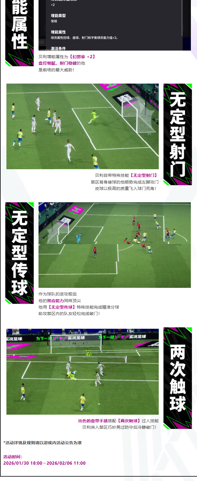 双增能史诗高光巴蒂斯图塔、卡洛斯、贝隆将通过【环球精英 南美 高光 特级经纪人(兑换保底)】首次登场!除此之外,你还将有机会获得双增能史诗高光贝利、特维斯、苏亚雷斯、弗兰。想要补强球队的玩家们,千万不要错过此次活动!