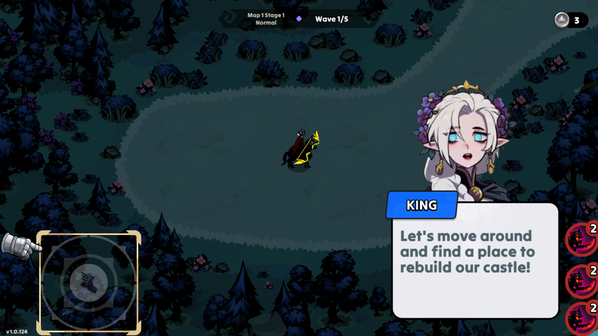 1.跟随新手教程,点击左下角进行移动。