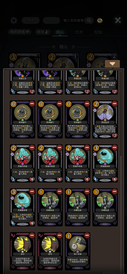 幽灵套前期往牌库刷亡魂,通过囚徒,躁动灵魂和灵魂之主的combo还有拉亡魂打伤害。