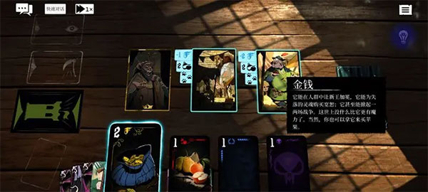 接下来介绍游戏的战斗界面!在预言奇谈中除了用物理方式解决敌人还能靠各种方式解决掉危机!正所谓有钱能使鬼推磨...!