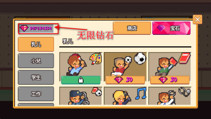 5、在商店中,可以使用钻石来解锁更多的人物、职业、背景和道具等等,钻石可以通过签到、完成任务来获得,在游戏过程中也会出现少量钻石。