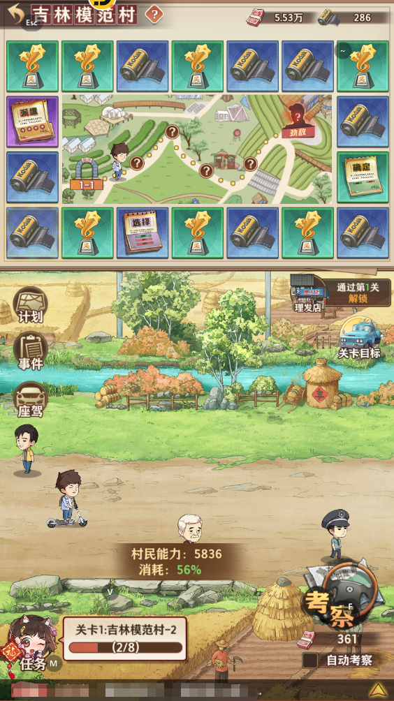 此外,考察时有概率会触发事件,某些事件完成后将会获得少量知名度