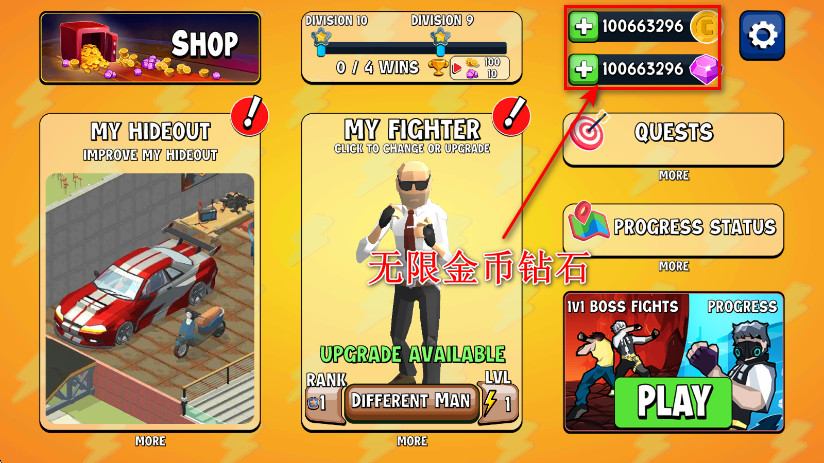 1、进入游戏,选择你的角色点击"PLAY"即可开始游戏;