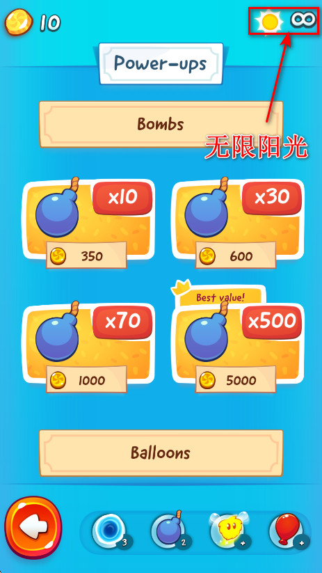 5、点击吹风机吹动气球到中间,糖果就会在气球的带动下上升。
