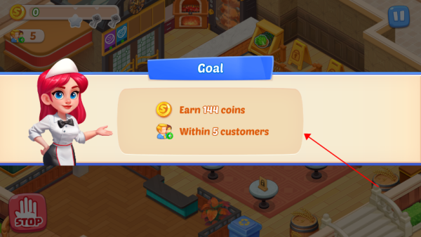 4、点击餐桌上的“厨师”标志,再根据客人所需配菜,点击配菜位置再点击客人,依顺序送达