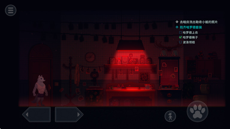 2、玩家一开始将要控制狼人角色,控制他调查不同的物品。