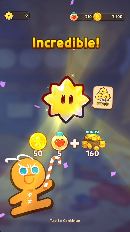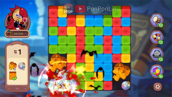 6.作为一款益智消除手游,以玩家扮演饼干透过消除指定果冻方块+障碍物来达成过关条件来闯关,并可搭配从关卡/活动奖励/商城获得的道具来搭配应用,面对各种不同的难关。