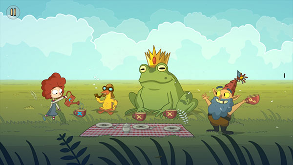 1、进入迷失乐园手游最新版,我们可以看到一个草坪上的青蛙,点击它,会出现小女孩。