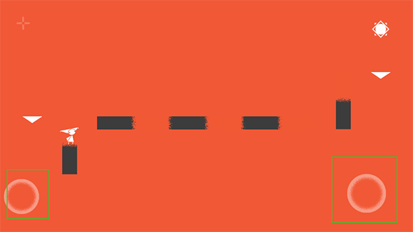 2、当按左边的圆圈时,游戏画面颜色会变换,小人站的台阶也会高低变换。