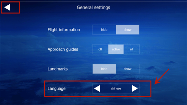 4、选择该界面中的“Language”并点击三角形进行切换,切换至“Chinese”后直接点击左侧的返回按钮。
