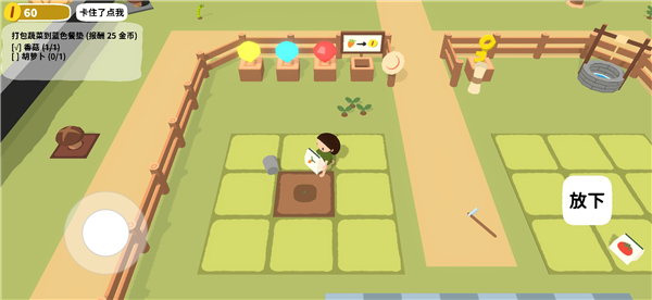 1、首先进入黏脚菜园游戏后,通过商店或任务等方式获取种子。