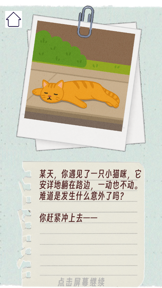 1.进入游戏后,玩家只需点击屏幕即可继续游戏,系统会根据操作进入下一步流程。