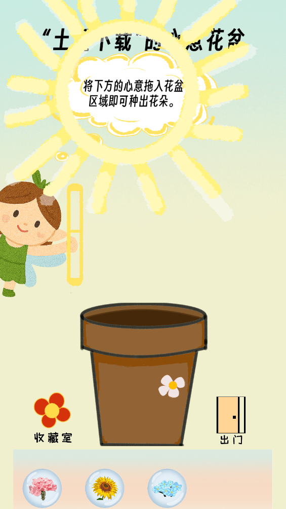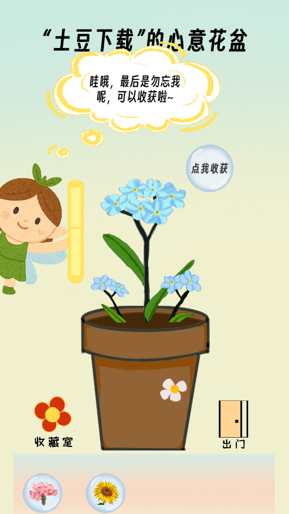 8.回到游戏的主页后,将你一路收获的花朵心意种入花盆中,这些花朵承载着你所有的故事与情感。