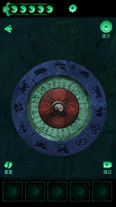 6.点击墓门上的四象八卦机关,根据石柱上的刻痕,调整二十八星宿和十二生肖的位置与四象对应