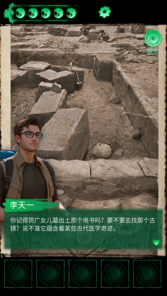 5.点击查看墓室门右侧石柱上的刻痕,获得线索