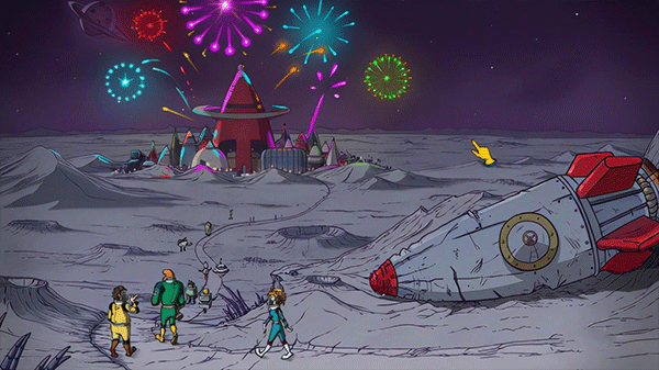降落后等待犬吠剧情触发,然后探索地点中多出流水线,去流水线探索能带回破损的机械狗。几天后触发修理剧情,打火机、书、胶带随便选哪个都行(亲测均可),再过几天提示找零件,探索地点中多出墓地,去墓地或博物馆探索均能带回零件。接下来触发充电剧情,给电池即可。然后到达分支点,给机械狗装饰,这里一定要选智力。再过几天触发充能,会清空你的电力,然后要你派人出去,随便选一个即可。之后触发新飞船结局。