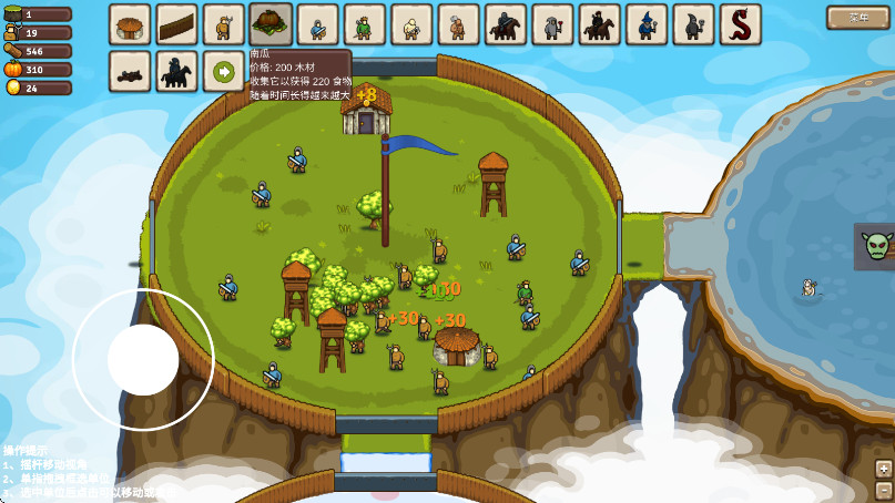 5、我们的初始领地只有一块,需要先点击左上方的图标【建造仓库】才能让工人们开始劳动。