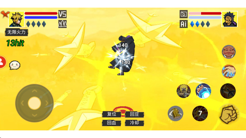 3、选择完后点击“开战”,左下角移动角色,右侧是技能释放;