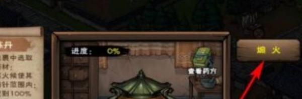 4、在炼制过程中,根据系统提示放入所需的药材,点击煽火。