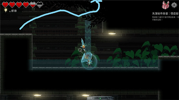 位于刚开始被断根的树上方,如果不在乎时间可以在刚吃完蚊子肉后就就二段跳上去,就是要试几次。