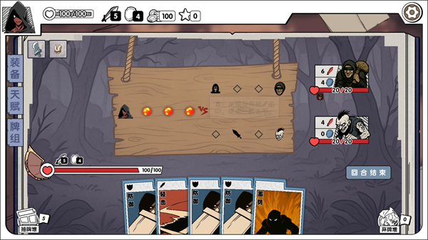 5、使用各种攻击卡牌攻击敌人将对方血量清零就可以通关。