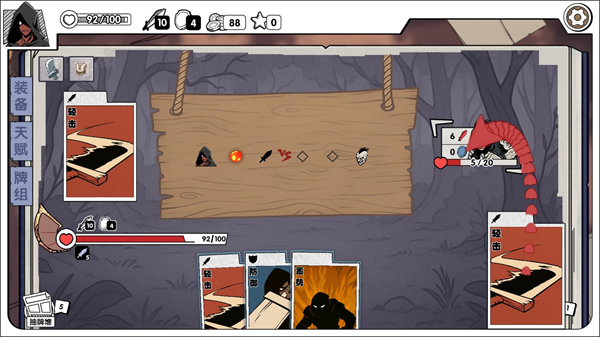 4、进入战斗后点击下方的卡牌来做出不同的行动,每一张卡牌都有不同的行动。